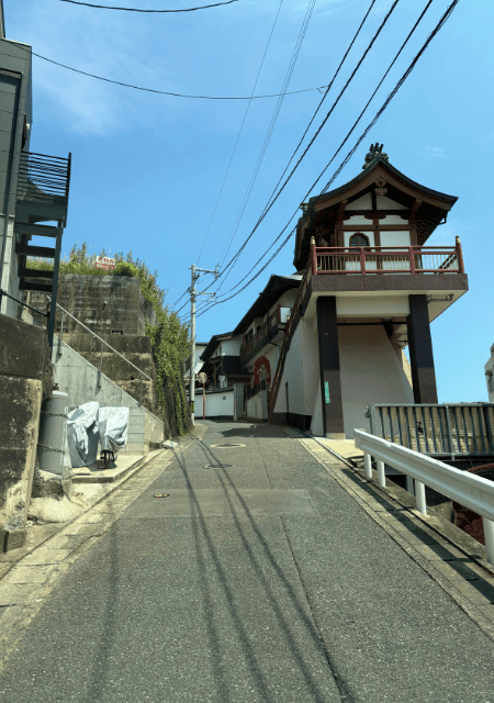 ルート2:女坂(室見駅側・セブンイレブン裏) 地下鉄室見駅から来る場合に便利なルートです。「愛宕桜坂」とも呼ばれ、踊り場が多く比較的楽に登れます。私も初めて参拝した時はこのルートを使いましたが、男道よりもずっと楽でした。