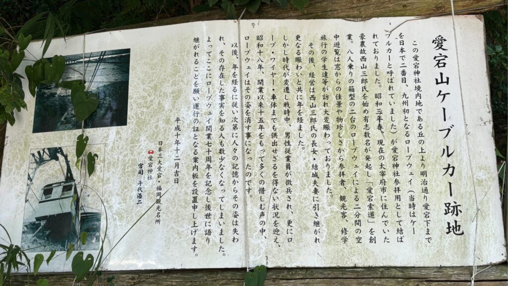 この愛宕神社の境内は、高い位置にあり大変眺めが良い場所です。実は昭和3〜18年まで、約15年間ケーブルカー(ロープウェイ)が使われていました。