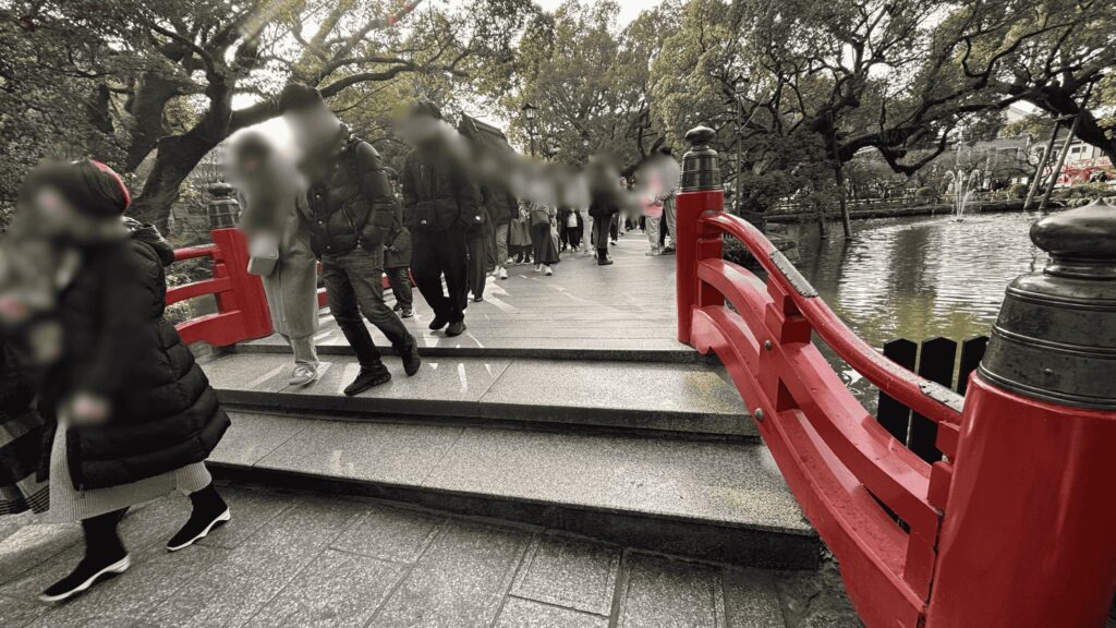 家族連れや観光客が集中し、参道も混雑して自分のペースでは歩けないほどになります。この時間帯も2時間以上待つ覚悟が必要です。